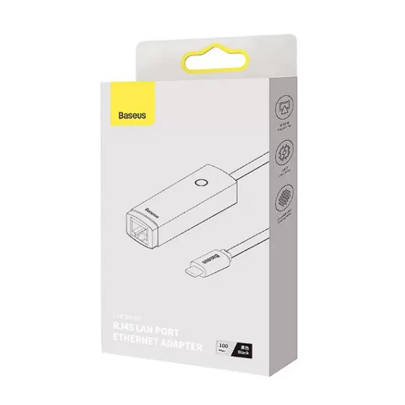 Adaptor retea Baseus Lite, USB Type-C la RJ-45 10/100 Mbps , LED , culoare neagra , WKQX000201 .