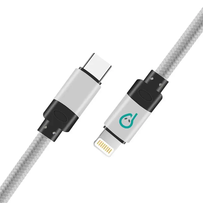 Cablu alimentare si date Spacer , pentru smartphone , USB Type-C (T) la Iphone Lightning (T) , braided , lungime 1m , culoare argintie , SPDC-LIGHT-TYPEC-BRD-SL-1.0 .