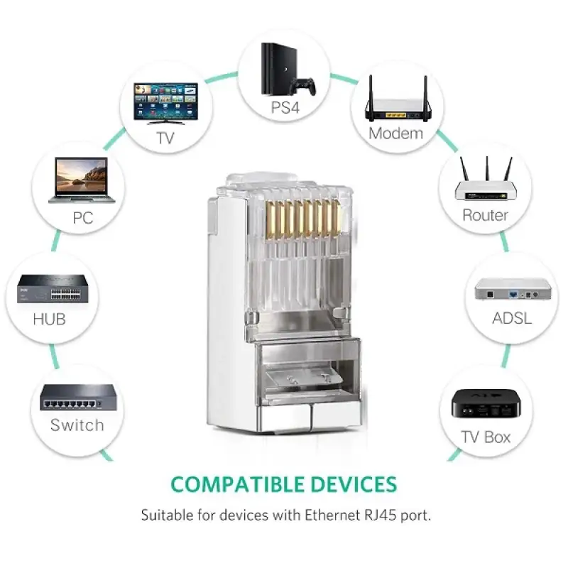 Set de 50 mufe RJ-45 pentru cablu UTP, Cat6 , ecranate , NW111 Ugreen 50247 .